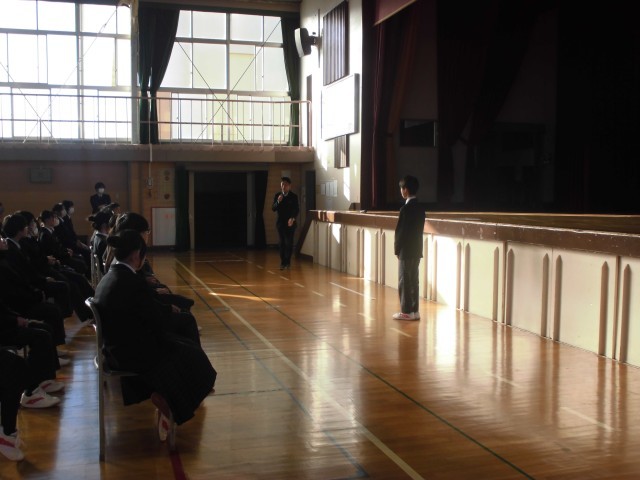 本日、学年集会がありました。冬休みの注意点や、スマホやSNSの使い方、友達との過ごし方等、気を付けてほしいことを確認しました。