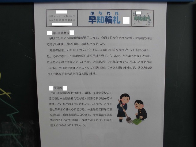 12月22日(月)<心の風景>担任からのメッセージ その2