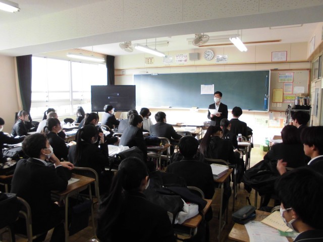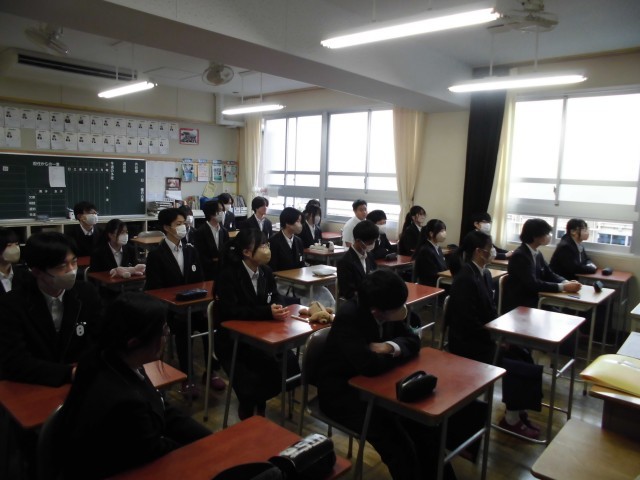 オンラインで行った始業式では、どの生徒も真剣に話を聞く姿がみられました。