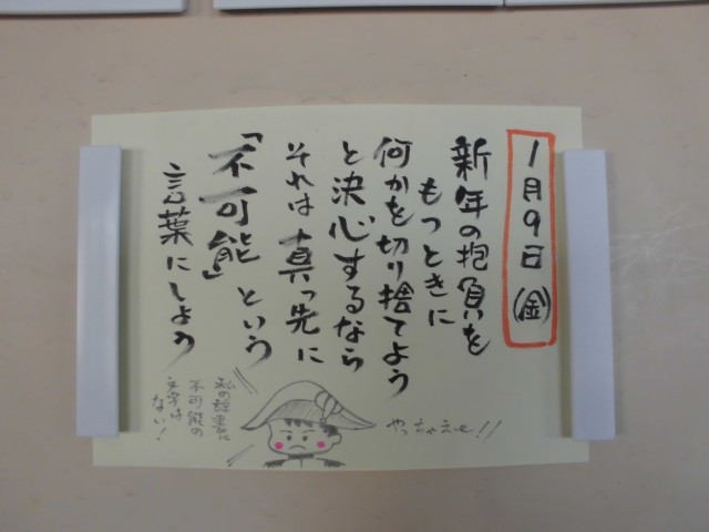 3学期という最初の空白ページ。よい物語の書き始めができた人が何人もいたようです。「なりたい」と願ったことで心が動き出し、「やる」と決断したことで一歩前に出られた証ですね。2026年が始まりました。節目の時です。この時を大切にして、自分を成長させていってほしいと思います。一人ひとりのよい成長は、クラス・学年・学校などチームのよい成長にもつながっていきます。私もうれしい話題を見つけて、先生や生徒のみなさんに伝えていきます。