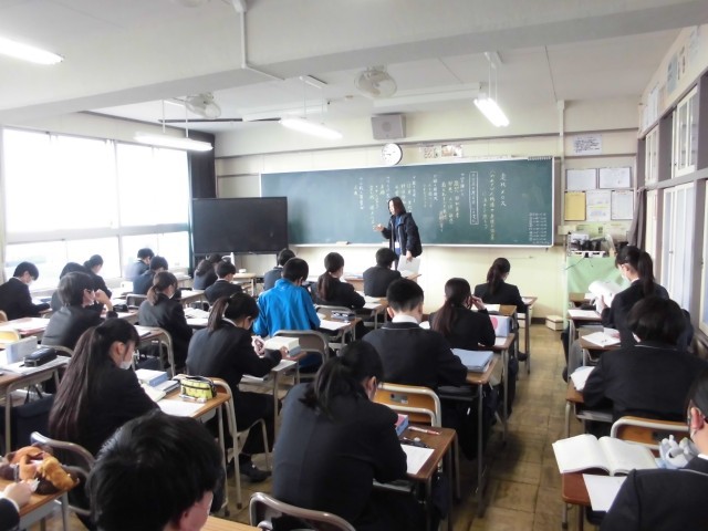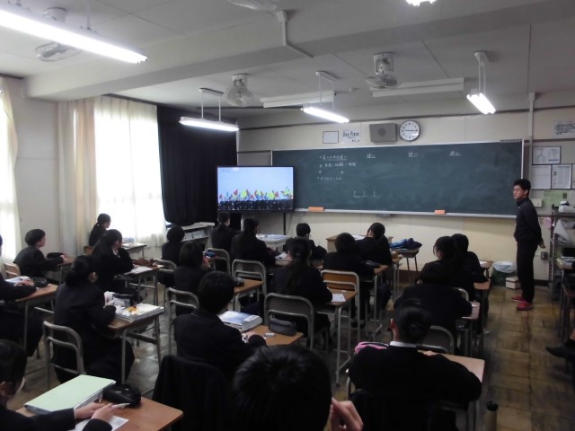 1枚目は1年生「理科」の様子です。音の速さについて学習しています。「音の種類によって速さは変わるのか?」という問題について予想した後、実験映像を見ながら確認をしていました。