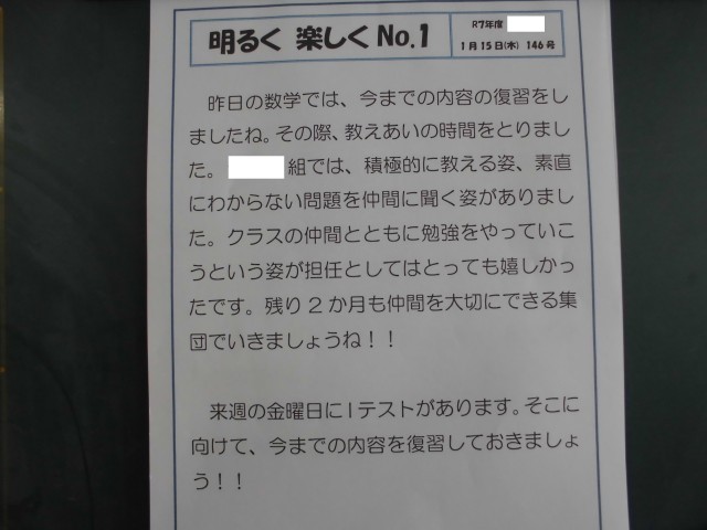 1月15日(木)<心の風景>担任からのメッセージ