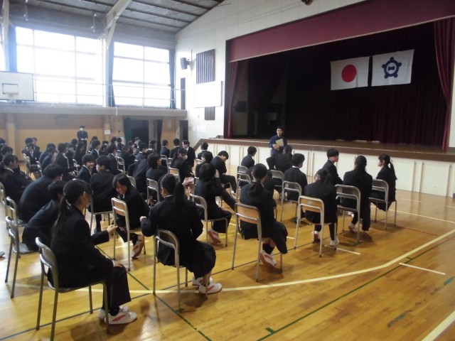 6時間目に学年集会がありました。3学期をより充実させるために、先生方から『頑張ってほしいこと』についてお話がありました。