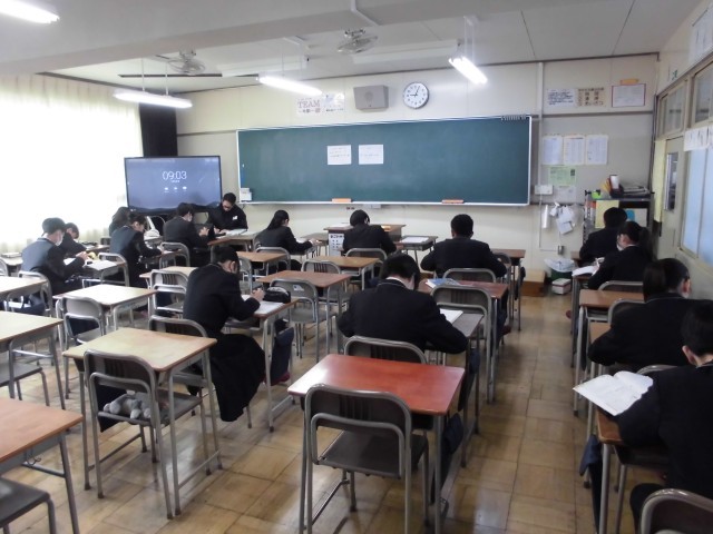3枚目は3年生の様子です。愛知県私立・専修学校の一般入試3日目。3日間の中で、今日が一番寂しい教室でした。来週は賑やかな教室になることでしょう。楽しみですね。