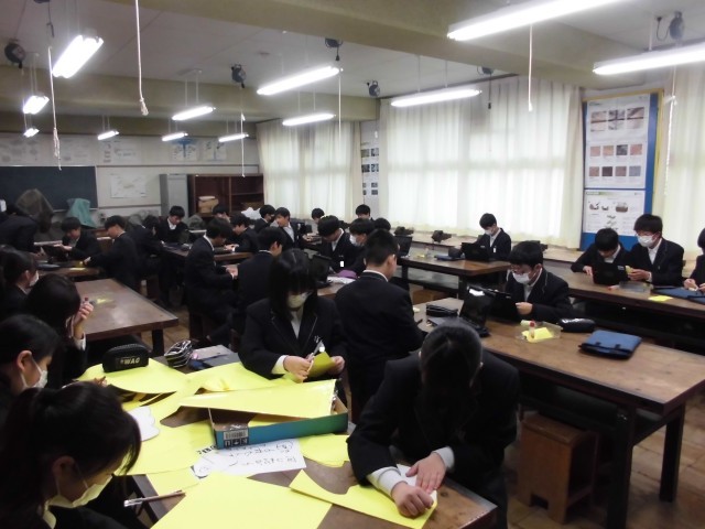 4枚目は特別支援学級の様子です。3年生が願書の作成を行っていました。自分の力で丁寧に作成に取り組むことで、受験に向けての心づくりをしていきましょう。