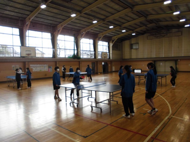 2枚目は3年生「体育」の様子です。卓球のゲームに取り組んでいます。ポイントが決まって次のゲームが始まるまでに、ルールや戦略について話し合いながらゲームを進めていました。