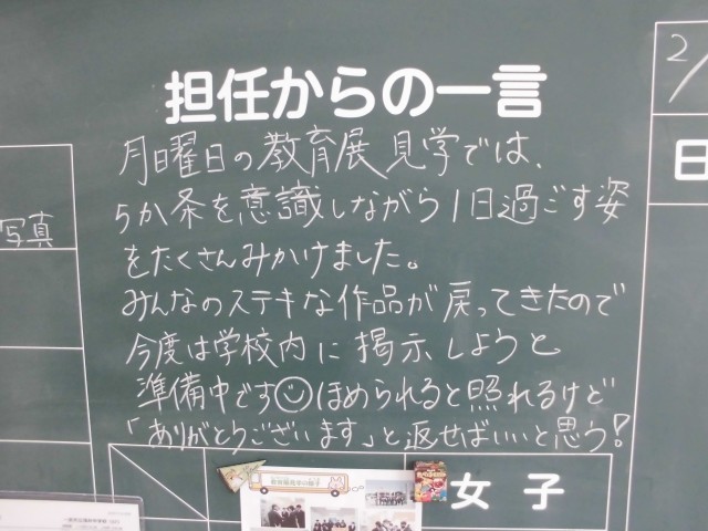 1月30日(金)<心の風景>担任からのメッセージ