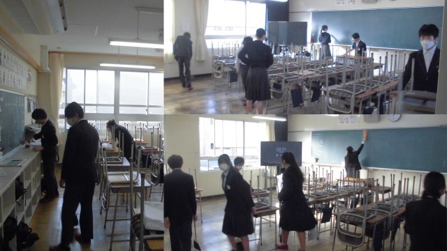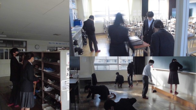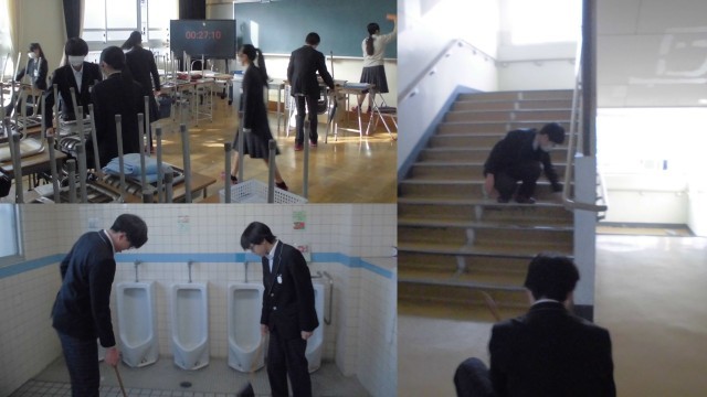 今日は公立高校推薦入試と特色入試のためいつもより少ない人数での清掃となりました。