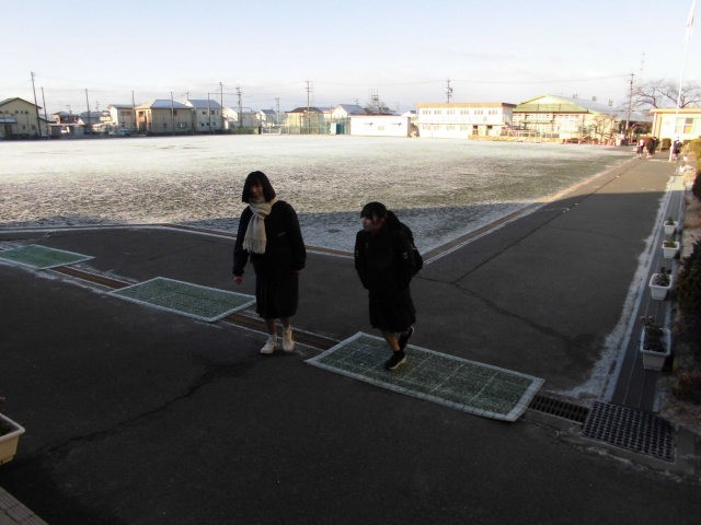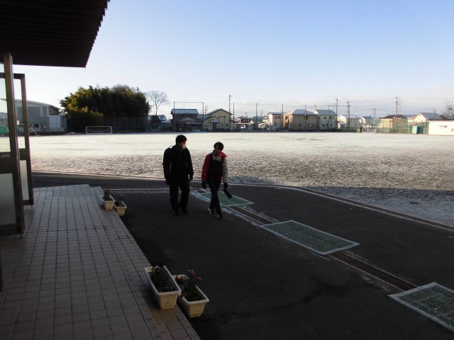 うっすらと雪が積もっている寒い朝になりました。