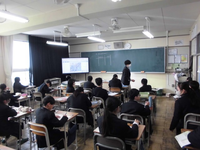 1枚目は1年生「社会科」の様子です。縮尺について学習をしています。2地点の地図上の長さを測り、実際の長さを求めています。つまずきやすい内容の1つです。授業に集中して取り組むことで、確実に身に付けていきましょう。