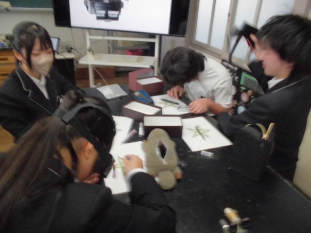 私たちが普段、当たり前のように目にしている景色。実はそこには、脳と神経による巧妙な連携が隠されていました。授業ではその仕組みを学んだあと、視界が上下逆さまになる「上下反転眼鏡」を装着し、「紙に星を描く」という実験に挑戦しました。思うように動かない自分の手に、あちこちで驚きと笑い声が上がりました。未知の感覚にワクワクしながら、混乱の中でも順応しようとする「脳の適応力」の凄さを肌で感じる、非常に貴重な体験となりました。