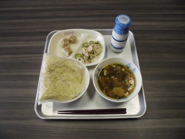 ソフトめん 牛乳 しゅうまい ラーメンスープ(汁) もやしとちくわの中華あえ
