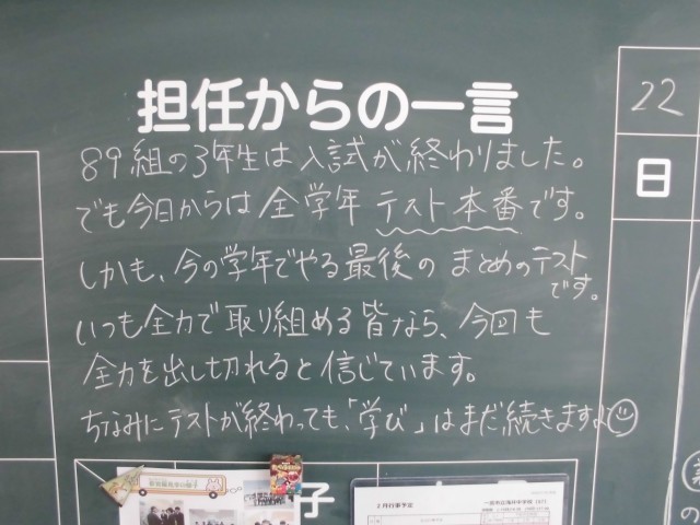 2月19日(木)<心の風景>担任からのメッセージ その3