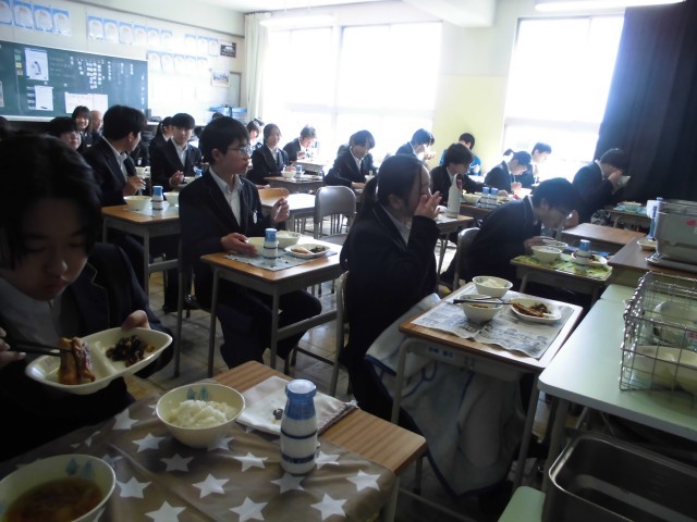 1年生の教室では、小学校の2倍のカレー粉を使った「ちくわのカレー揚げ」を前に、「もっとスパイシーがいい!」という声がありました。カレー粉に含まれるスパイスは、脳の血流を良くするといわれています。おいしく食べて集中力を高め、明日のテストで力を発揮できますように!