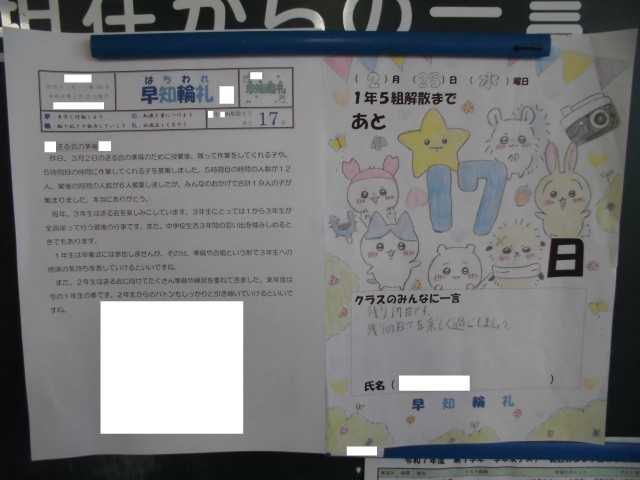 2月25日(水)<心の風景>担任からのメッセージ