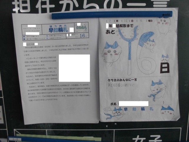 2月26日(木)<心の風景>担任からのメッセージ その2