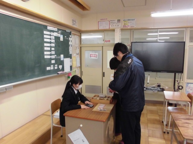 4枚目は特別支援学級「数学」の様子です。1・2年生の生徒は合唱練習に参加しているため、3年生だけの授業でした。先生やクラスメイトが会話をしながら、意欲的に取り組んでいました。