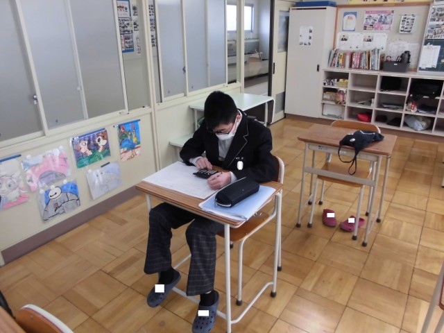 1枚目は特別支援「数学」の様子です。データの活用について学習をしています。ヒストグラムを作成するために、電卓を使いながらデータをまとめていました。