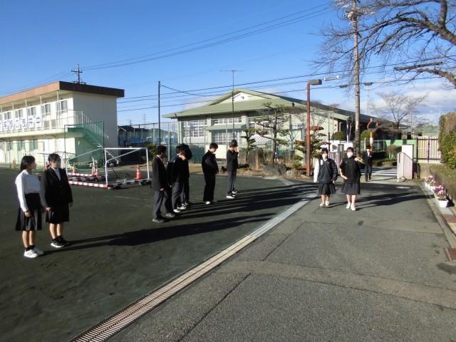 毎週水曜日と金曜日に行っているあいさつ運動。今日は、3年生にとって最後のあいさつ運動になりました。