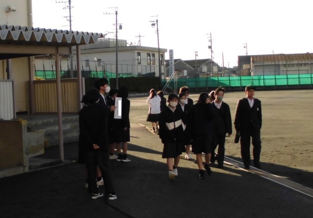 月曜日から、選挙活動が始まりました。立候補者、応援する人たちが、登校中の生徒たちに声を掛けていました。