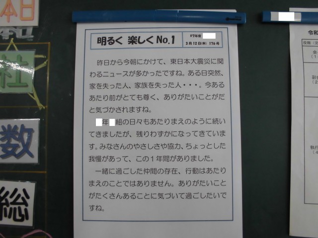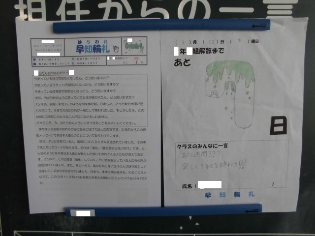 3月12日(木)<心の風景>担任からのメッセージ