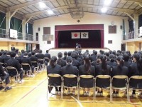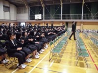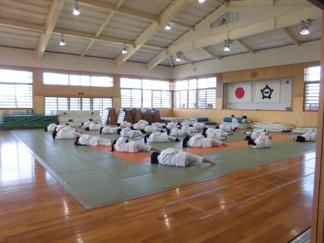 2、4組の女子の体育では、柔道の受け身の練習を行っていました。横受け身や前回り受け身のやり方について、お互いに教え合いながら練習に取り組んでいました。