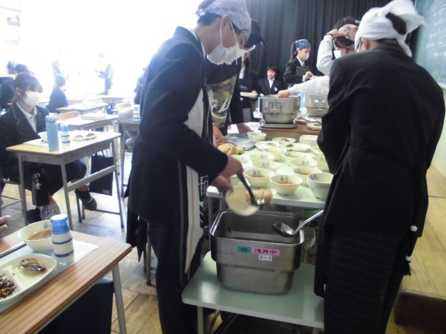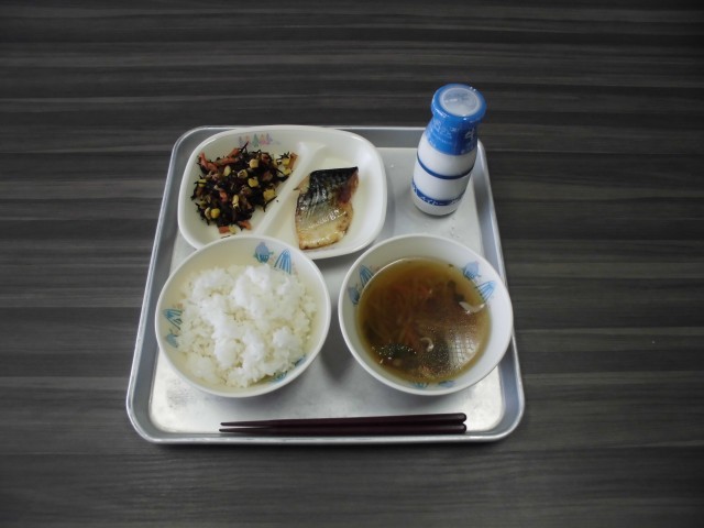 1年生の教室では「だしを味わう日」の札を見ながら、「昆布?」や「干ししいたけ?」と様々な答えが返ってきました。家庭科の学習もあり、だしを意識して丁寧に味わう様子もありました。だしに関係する具体的な名前がスッと出てくることから、少しずつ学んだ知識が実生活での結びついてきているようです。