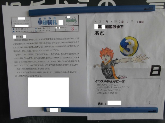 3月18日(水)<心の風景>担任からのメッセージ その2