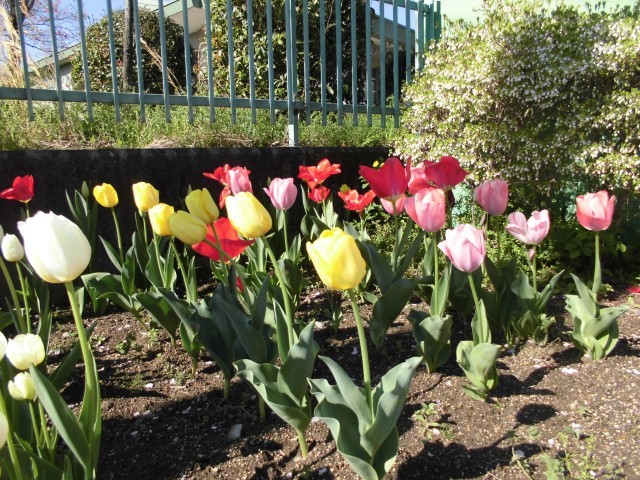 明日は入学式・始業式です。浅井中学校の自然に目を向けると、色とりどりの花々が、入学・進級のお祝いをしてくれています。