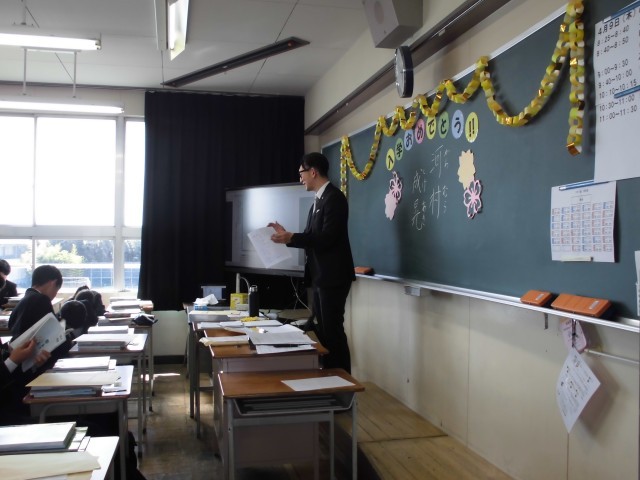 本日、1年生143名入学式を迎えました。入学式後、自分のクラスで初めての「学級活動」の時間を過ごしました。