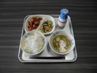 今日の給食は「しょうゆラーメン・牛乳・揚げギョーザ・切干しだいこんの中華和え」です。今日は、人気メニューのラーメンです。いろいろな味のラーメンがありますが、今日は、しょうゆ味のラーメンです。今日のラーメンの汁の中には、チンゲンサイが入っています。チンゲンサイは、日本でもおなじみの中国野菜の一つです。はくさいの仲間ですが、葉は、はくさいのように巻かない品種です。はくさいより緑色が濃く鮮やかでカロテンが豊富な緑黄色野菜です。