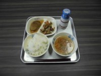 今日の給食「麦ご飯・牛乳・八宝菜・揚げギョーザ・バンサンスー」です。