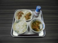 今日の給食は「ご飯・牛乳・ポテトコロッケ・切干しだいこんのごま酢和え・138かきたま汁」です。