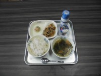 今日の給食は「塩ラーメン・牛乳・焼きギョーザ・切干しだいこんの中華和え」です。