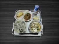 今日の給食は「ご飯・牛乳・ミンチカツ・茶わんむしスープ・小魚」です。