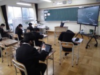 1枚目の写真は、3年生「国語」の様子です。俳句の意味や、季語の確認等を行っています。挙手する姿も見られ、やる気が感じられます。