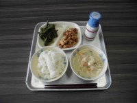 今日は「一宮を食べる学校給食の日 」です。138かきたま汁の「卵」と、てりどりのはちみつ風味の「はちみつ」、切干しだいこんのごま酢和えの「切干しだいこん」が愛知県産の食材 です。地元の恵みを味わって食べましょう。