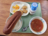 黒ロールパン 牛乳 チキンナゲット みかんゼリー和え ミネストローネミネストロー...