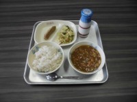 ご飯 牛乳 絹厚揚げの肉みそがけ 小松菜のおひたし みぞれ汁 ココアパウダー 今...
