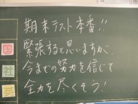 今日から期末テストです。落ち着いて、最後までやり切りましょう!