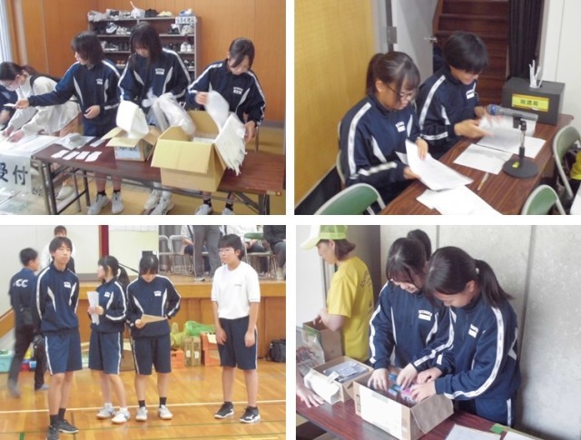 生徒たちは、受付や場内アナウンス、器具の準備・片付け、参加者の誘導、賞品の準備、心肺蘇生法及びAED取扱訓練の補助など、会の運営を手伝いました。どの生徒も任された仕事に一生懸命取り組むことができました。地域の行事を盛り上げようと積極的に活動している姿に頼もしさを感じました。