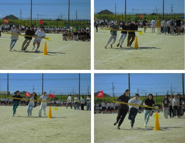 生徒たちとの白熱したレースは見どころがいっぱいで,「大人の意地」を感じさせる場面もありました。大人も子どもも笑顔があふれ,とても楽しいひとときでした。