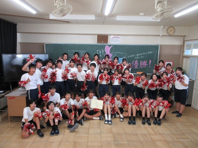 本日、天候に恵まれる中、体育祭を行いました。3年生にとっては中学校生活最後の体育祭です。自分の出場する競技に全力を出すのはもちろん、他学年の仲間が頑張る姿にも声援を送り、群団全体を盛り上げようと楽しく声かけをする姿が印象的でした。勝利すれば一緒に喜び、負けても相手を称えながらも同じ群団の仲間を励ましました。勝つことだけではなく、学校全体で楽しい体育祭にしたいという気持ちがとても伝わってきました。最後のダンスでは、体育の授業だけではなく、放課の時間などに踊る姿もあり、良いものにしよう、みんなで楽しもうとする姿がありました。一つ、大きな学校行事が終わりましたが、3年間の成長をとても感じられる体育祭でした。この体育祭で再確認した学年の絆をこれからも大切にして、前に向かって進んでほしいと思います。