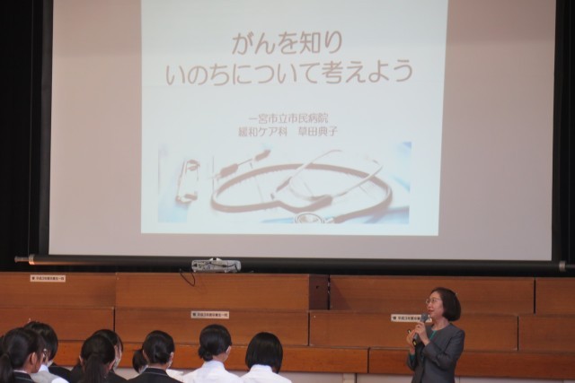 一宮市民病院の緩和ケア科部長の草田医師に来ていただき、「がんを知り、いのちを考えよう」をテーマに話していただきました。