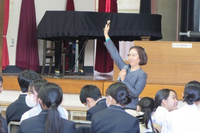 がんの予防や治療、緩和ケアについて教えていただきました。自分のいのち、他人のいのちについて、今、中学生の自分たちにできることを考えるとてもいい機会になりました。