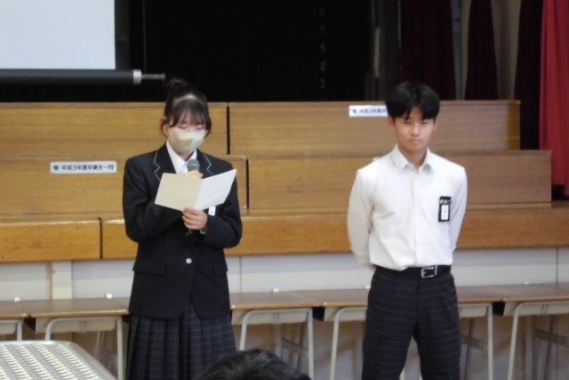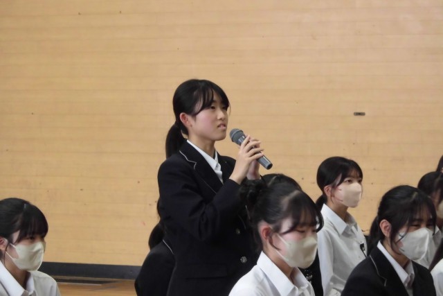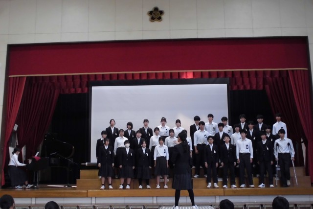 歌声コンクールまであと1週間となりました。今日の6時間目は聴きあい会でした。体育祭の青軍団と赤軍団に分かれて学年ごとに聴きあいをし、お互いの感想を言い合いました。1年生は初めての歌声コンクールへ向けて頑張ってきた成果を上級生へ、緊張の中がんばって歌いました。2年生は練習時間が少ない中でしたが、がんばって歌いました。3年生は最上級生らしい素晴らしい歌声を聴かせてくれました。1週間後の本番がとても楽しみです。