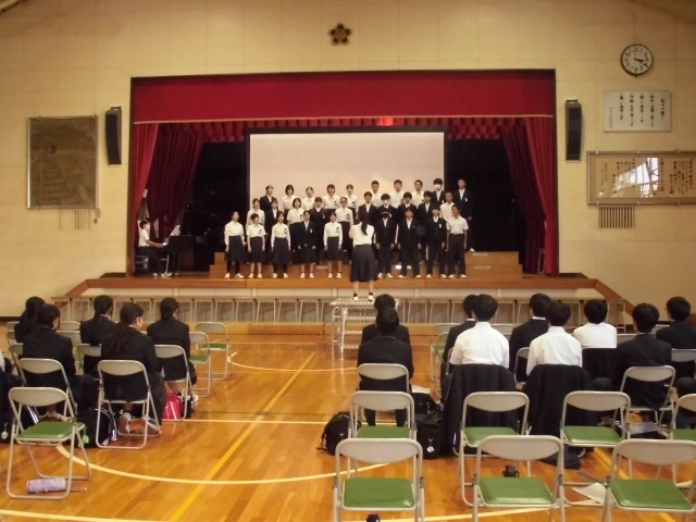 他のクラスの合唱を聴いて刺激になったと思います。歌声コンクールまであと1週間、精一杯頑張りましょう。