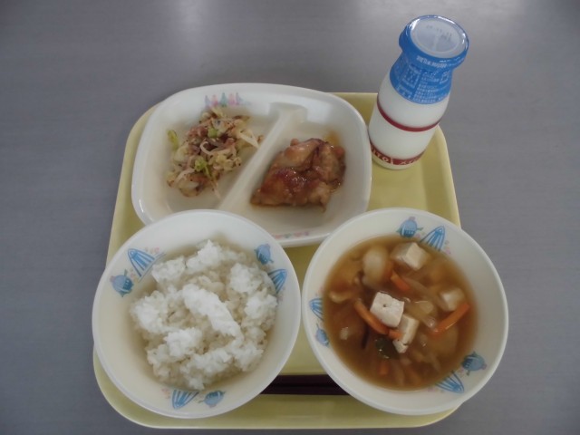 10月31日(金) ご飯、牛乳、てりどり、キャベツの梅かつお和え、のっぺい汁