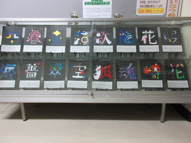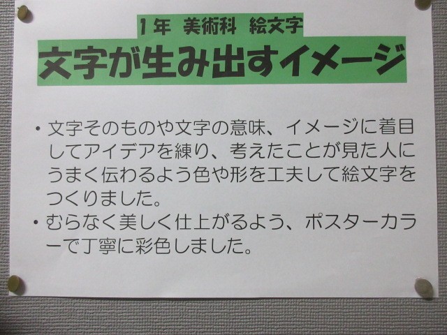 美術で絵文字を制作しました。昇降口に展示してありますので生徒のみなさん、ぜひ見てください。