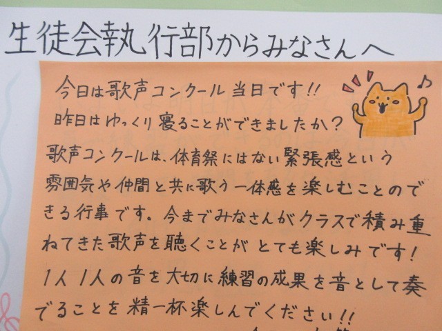 歌声コンクール当日を迎えました。今日の午後に開催します。